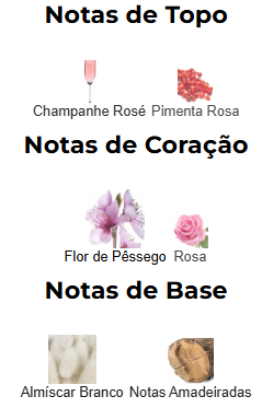 212 VIP Rosé de Carolina Herrera é um perfume Floral Frutado Feminino. As notas de topo são: Champanhe Rosé e Pimenta Rosa. As notas de coração são: Flor de Pêssego e Rosa. As notas de fundo são: Almíscar Branco e Notas Amadeiradas.